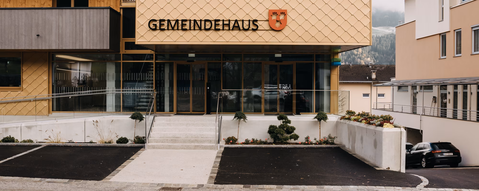 Durch diese Kooperation konnten schon viele Projekte umgesetzt werden, bei denen beide Seiten gleichermaßen profitierten. Es freute uns daher besonders als wir für die Sanierung des Gemeindehauses den Zuschlag erhalten haben. Es erfolgte eine vollständige Sanierung sowie eine Erweiterung des Altbestandes, inklusive Neufertigung des Daches, der Fassade und der Innenprofile. Im Zuge der Aufstockung wurde der Ausbau anhand der Blindstöcke der Fenster gefertigt. Dies bot höchstmögliche Flexibilität, um auf die Gegebenheiten der Altstruktur Rücksicht zu nehmen. Die Fenster wurden in Holz-Alu gewählt. Die Türen sind modern und geradlinig und passen zum Gesamtstil der Einrichtung. Ein weiterer starker Partner und verlässlicher Zulieferer von RIEDER Zillertal ist BINDER Holz in Fügen. Bei diesem Bauvorhaben lieferte dieser mit einem speziellen Sondertransport die Brettsperrholzelemente für den Gemeindesaal. Sie waren unglaubliche13 Meter lang und 3 Meter hoch.