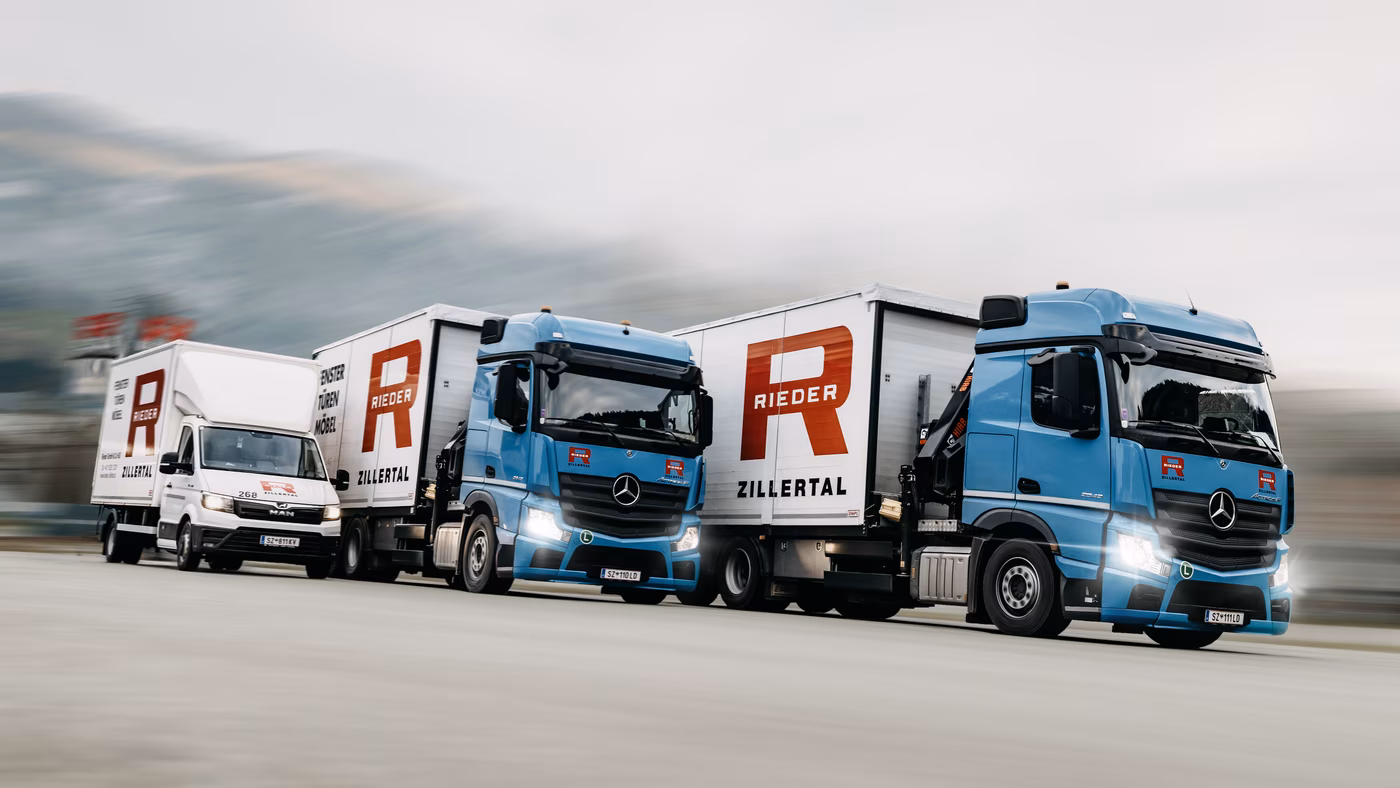 Mit der Investition in drei neue LKWs, alle von Mercedes-Benz, geht die Abteilung Fenster / Türen und Möbel einen weiteren Schritt in Richtung Zukunft. Um den Bedürfnissen der Fahrer gerecht zu werden, wurde ein LKW zusätzlich mit einer Schlafmöglichkeit ausgestattet. Ein weiterer Lastwagen wird ausschließlich für den Transport von Innentüren verwendet und ist dementsprechend adaptiert. Die Investition wurde auch getätigt, um technisch am neuesten Stand zu sein und so die vielen Lieferungen zwischen Österreich, Deutschland und der Schweiz reibungslos zu gestalten.