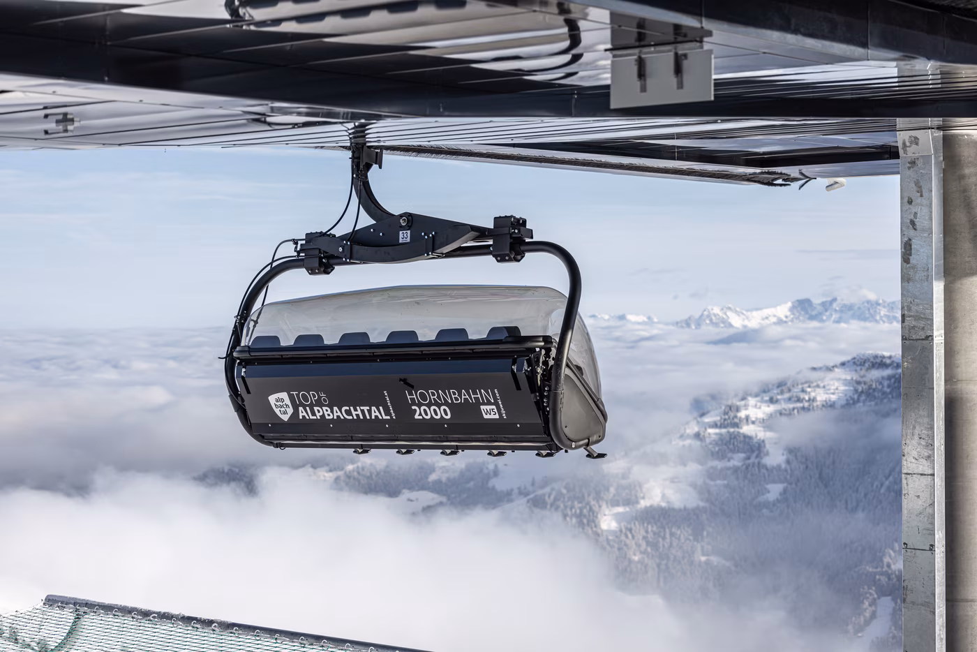 Mit der neuen Hornbahn 2000 werden die Fahrgäste in nur 3.45 Minuten zur Bergstation und dem neuen Aussichtsturm „Top of Alpbachtal“ transportiert. Eine Wetterschutzhaube & Sitzheizung runden den Komfort der neuen Bahn inkl. gemütlicher Ledersitze ab.