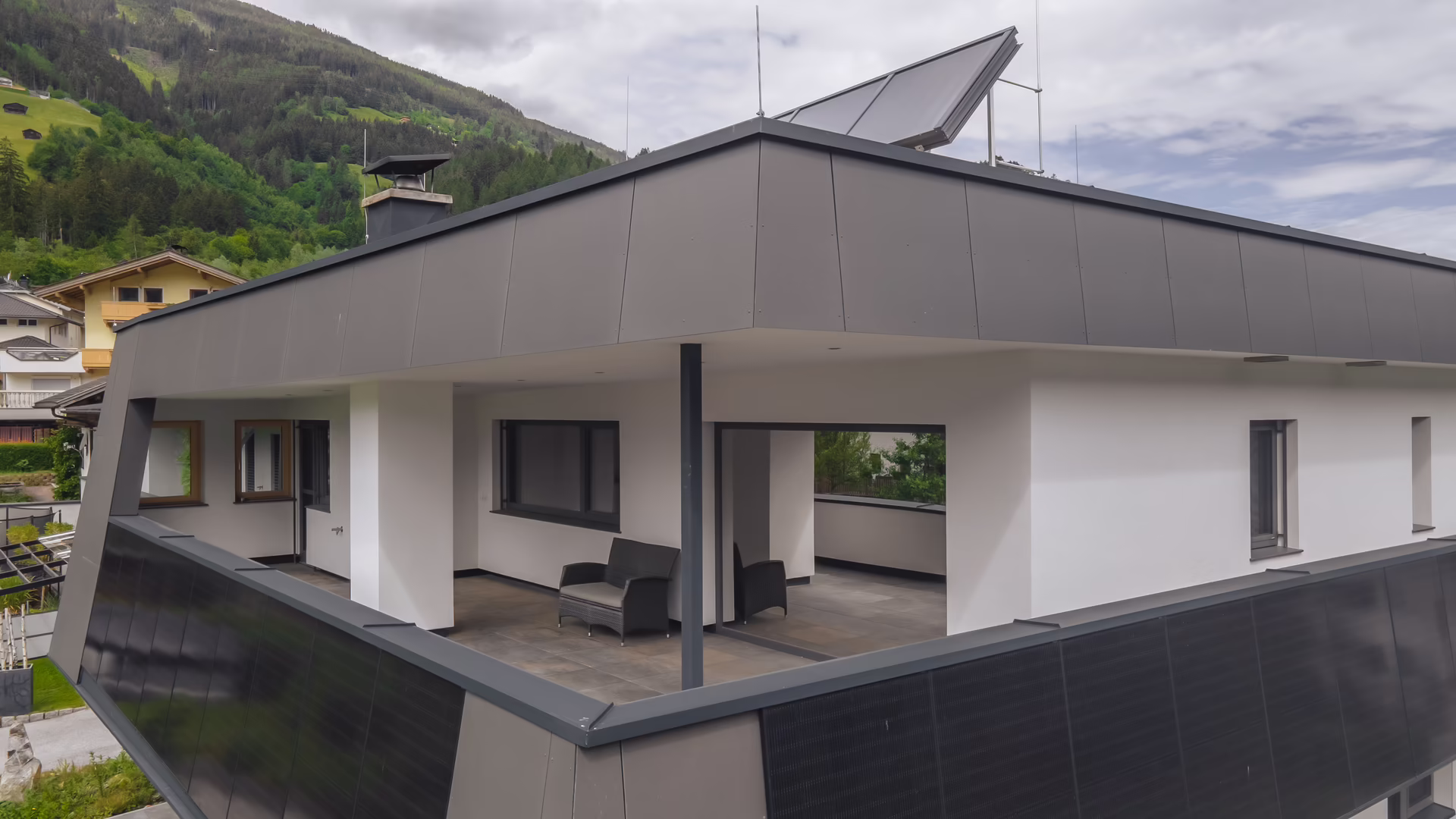 Durch die Integration einer Photovoltaikanlage in die Fassade beweisen die Bauherren Innovationsgeist und zeigen, wie die Zukunft durch sorgfältige Planung und durchdachte Lösungen nachhaltiger gelebt werden kann.