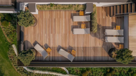 Die Liebe zur Natur und die Verbundenheit zur Heimat spiegelt sich beim neuen Badehaus auch in der Auswahl der Materialien sowie der architektonischen Schrift wider. Holz ist ein Werkstoff, der Wärme ausstrahlt und eine entspannende Wirkung hat. Familie Moigg entschied sich beim Pool-, Wellness- und Ruhebereich außen für Holzdielen, die ebenfalls unser Holzbau Team verbaute.
