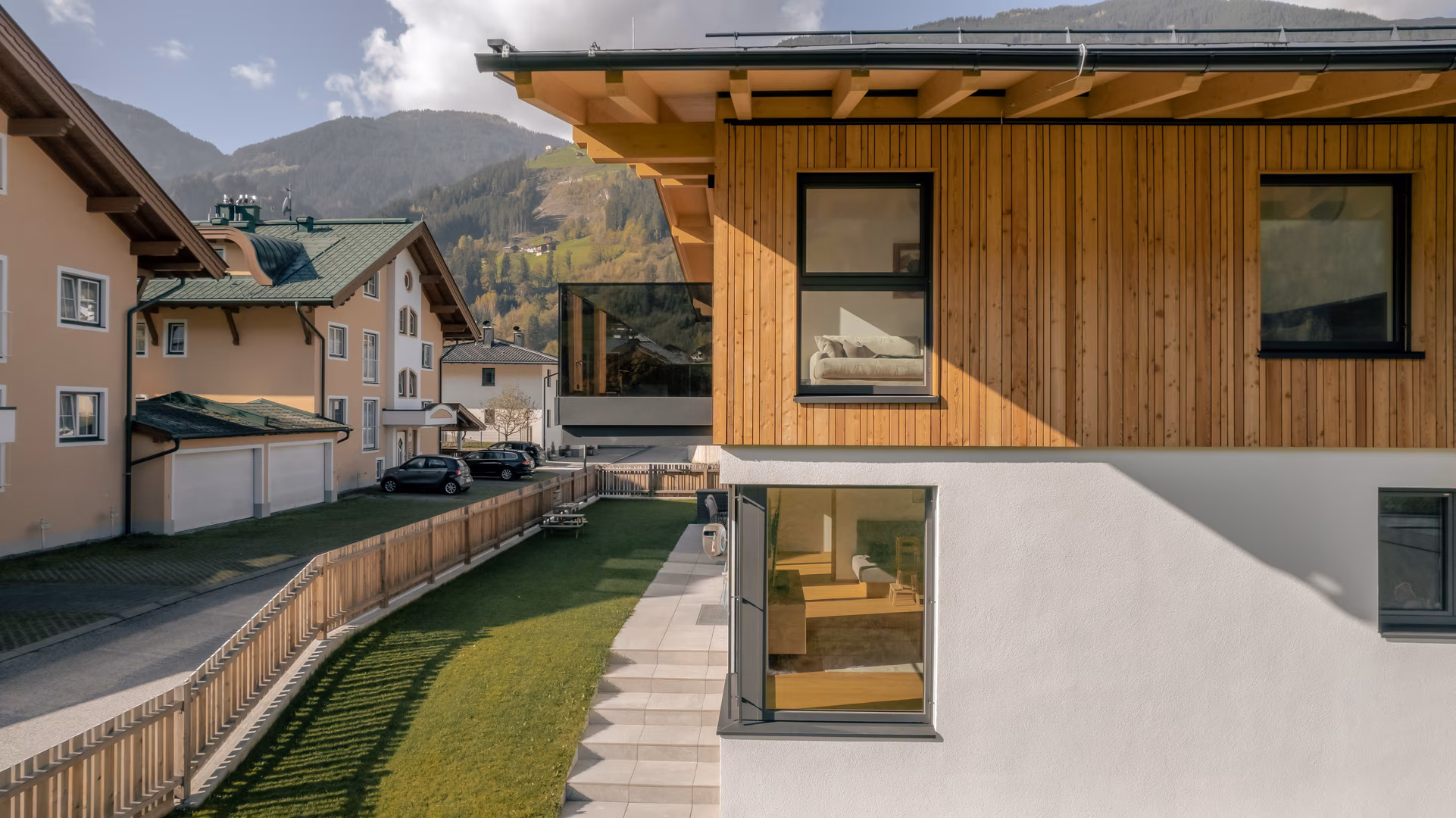 Das eigene Haus bedeutet zwar auch viel Arbeit, als familiärer Ankerpunkt und Rückzugsort ist es dennoch unschlagbar. Bereits bei der Planung freut man sich auf die Räume, die man mit eigenen Ideen und Leben füllen darf. Wichtig ist ein Baupartner, auf den man sich verlassen kann und der einem zu jederzeit ehrlich berät. Dann wird das Traumhaus ein wahrer Kraftplatz. Beim Bau ihres Eigenheimes vertraute Familie Fankhauser auf unser Holzbau Team sowie auf unsere langjährige Kompetenz im Bereich Fenster und Türen. Das zweigeschossige Einfamilienhaus mit Satteldach wurde in Riegelbauweise errichtet. Generell wählten die Bauherren einen Stil, der die Platzverhältnisse von 210 m2 optimal ausnutzt und die Modernität mit der so wichtigen Praktikabilität verbindet. Passend zum Erscheinungsbild des Hauses wurde das Carport und der Zaun ebenfalls von unserem Holzbau ausgeführt. Auch bei diesem Bauvorhaben ist die hervorragende, interne Zusammenarbeit zwischen Holzbau und unserer Fenster- und Türen-Abteilung zu loben: Die Abstimmung über kurze Wege und entsprechende Planung im Holzbau erleichtert die passgenaue Montage der Fenster und Türen.